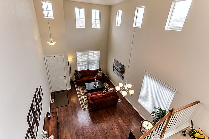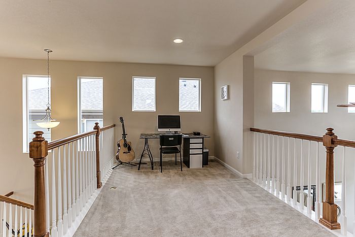 There are two lofts upstairs as well as two bedrooms and a full bath.