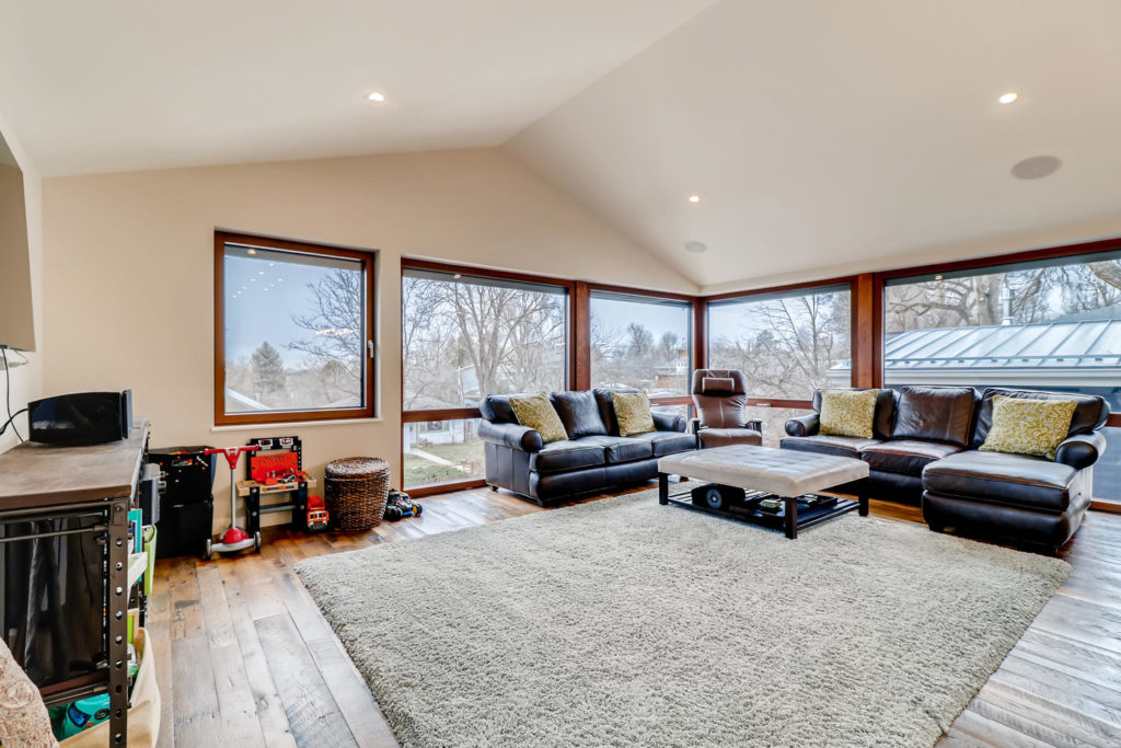 Built in 2017, this custom home is located just 2 blocks from North Boulder Park with easy access to hiking and biking trails. Designed to be highly energy efficient, the home has 16 inch exterior walls, German windows and doors and a geothermal heating and cooling system. It has a HERS rating of 41, which can be lowered to -8 with the addition of a solar system. Enter the home on the ground floor to find a living area or workout room, the master suite and 2 additional bedrooms and a full bath. Enter from your garage on the upper level to a spacious laundry and mud room. The kitchen is well-appointed with Quartz and wood block counters, Sub-Zero and Wolf appliances and a 20 foot sliding window at the farmhouse sink. The comfortable family room is filled with natural light and you’ll love making homemade pizzas in your pizza oven on the north patio. The sellers absolutely love the home, but new adventures await!