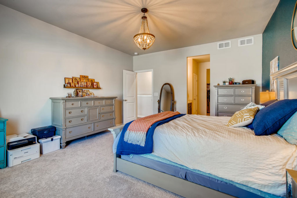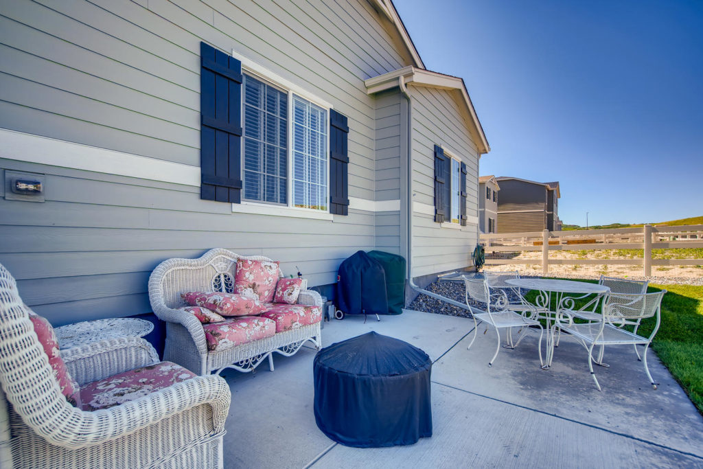 No need to wait for a new build! This lovely home is less than a year old and already has blinds installed and the back patio and sod are done. The ranch floor plan is open with beautiful upgrades. The unfinished basement has 9 foot ceilings and offers lots of options for you to finish to your liking. The Crystal Valley Pinnacle Rec Center is fantastic and includes a pool, fitness center and organized programs. You’re minutes from restaurants, shopping and you have multiple routes north (Denver) and south (CO Springs). Don’t miss out on this beautiful home!
